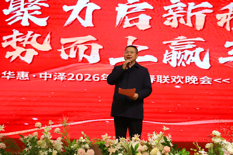 2025年,是华惠&中泽人凝心聚力、笃行实干的一年。晚会现场,华惠公司总经理林光伟为大家带来了新年致辞,回顾2025年我们携手并肩取得的丰硕成果,明确2026年(马年)的前进方向与关键举措,为全体同仁注入奋进力量。