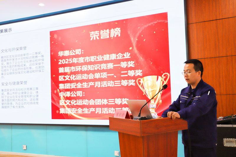 公司董事长唐礼亮对过去一年安全环保工作给予了充分肯定,为起好步、开好局,为十五五开局之年保驾护航,高质量完成2026年度安全环保生产目标指标提出了三点要求,一是要认清安全生产严峻形势。2025年,安全生产总体稳定,但安全风险依然突出,事故暴露出责任落实、现场管理、隐患整改等方面存在短板,必须警钟长鸣、从严管控。二是要强化安全生产责任落实。做到人人有清单、事事有标准、件件有考核。三是要抓实安全生产关键任务。利用好双重预防数字化信息系统、开展好“徽州早安”班会活动,发挥好隐患上报和未遂事件奖励机制,切实降低可记录事件数。